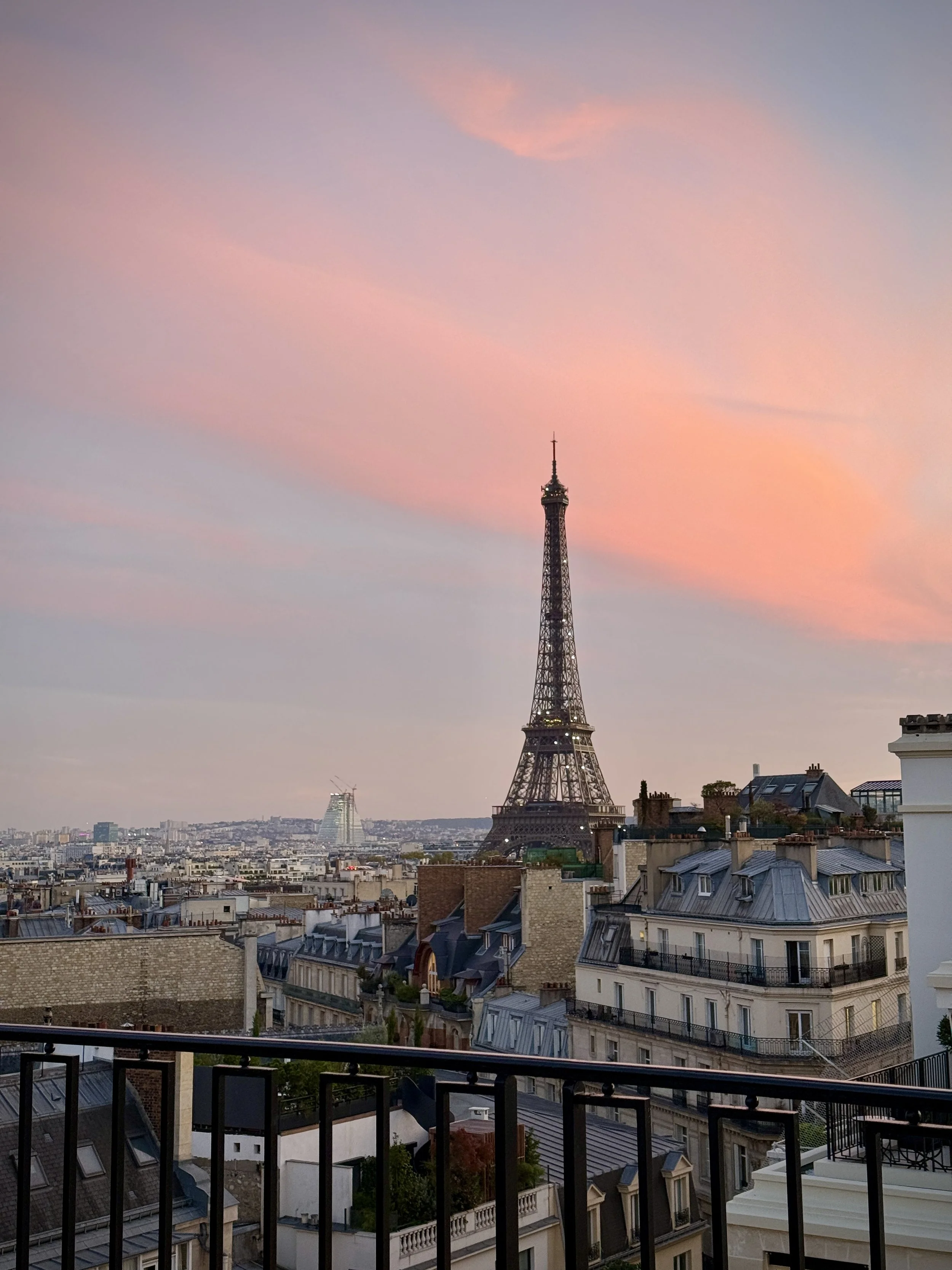 Some suites include private terraces with panoramic views, offering front-row seats to the Eiffel Tower, neighboring steeples, and sweeping Parisian rooftops, a defining feature of the hotel’s most sought-after accommodations.